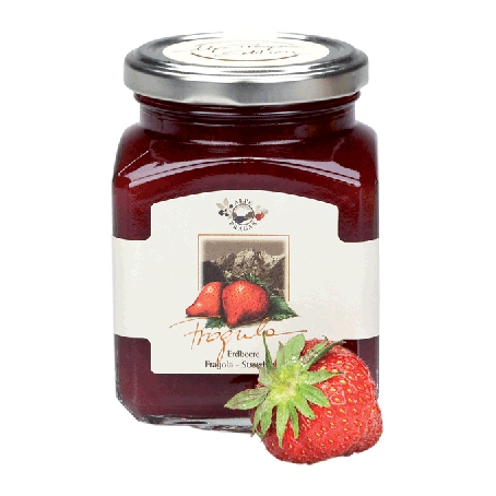 Aus sonnengereiften, sehr aromatischen Erdbeeren der Sorte Senga Sengana aus den Dolomiten.