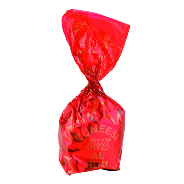 Cuneo-Praline aus feiner Edelbitterschokolade, gefüllt mit einer Ganache, die fein mit Rum abgeschmeckt ist.